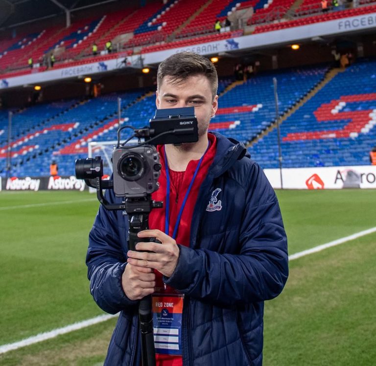Dominic’s big break came by proactively responding to a job ad. “I literally found the Crystal Palace videographer role online and applied,” he says. What caught their eye was his years of grassroots filmmaking experience with Offshoot, combined with a stint editing short-form videos for big YouTube creators like Calfreezy.